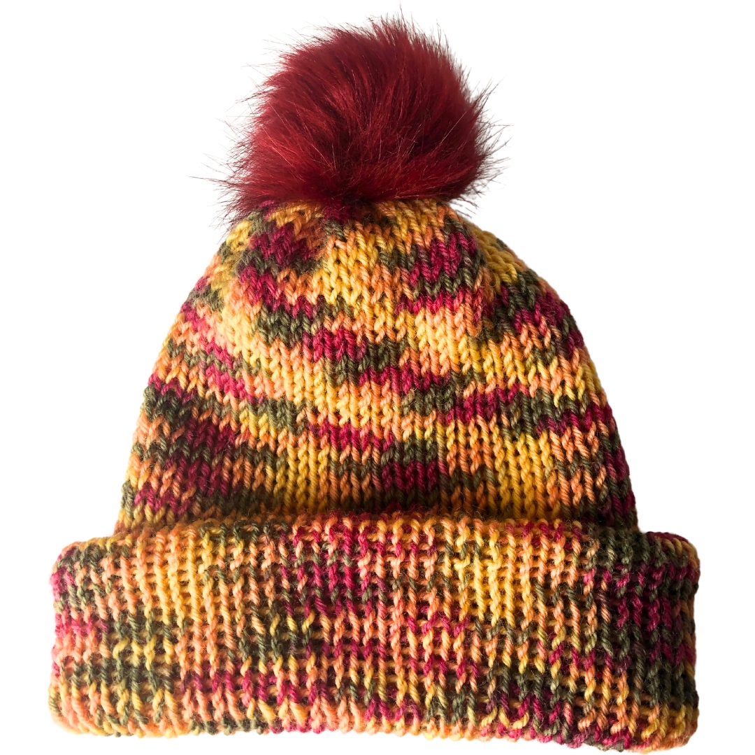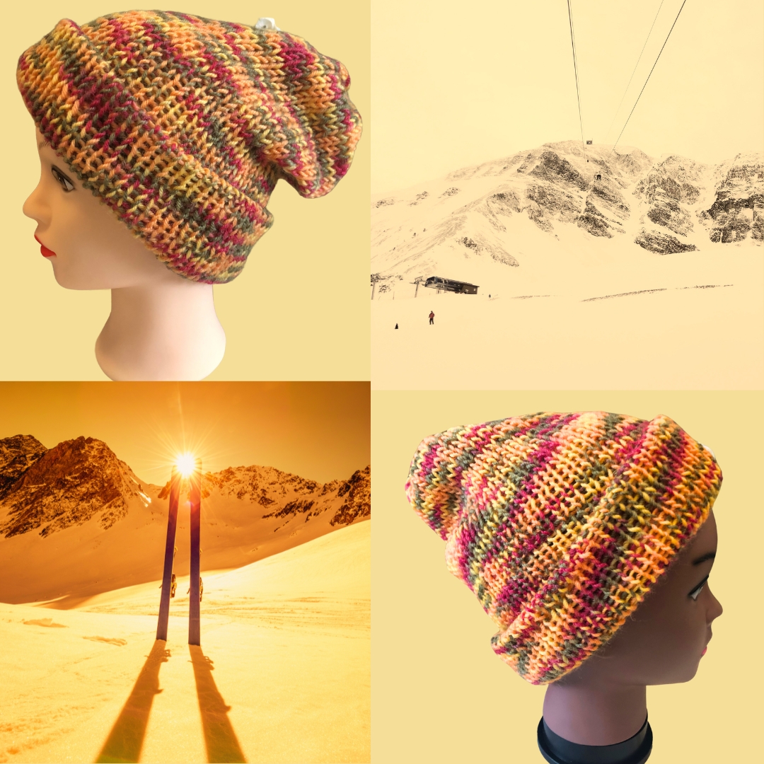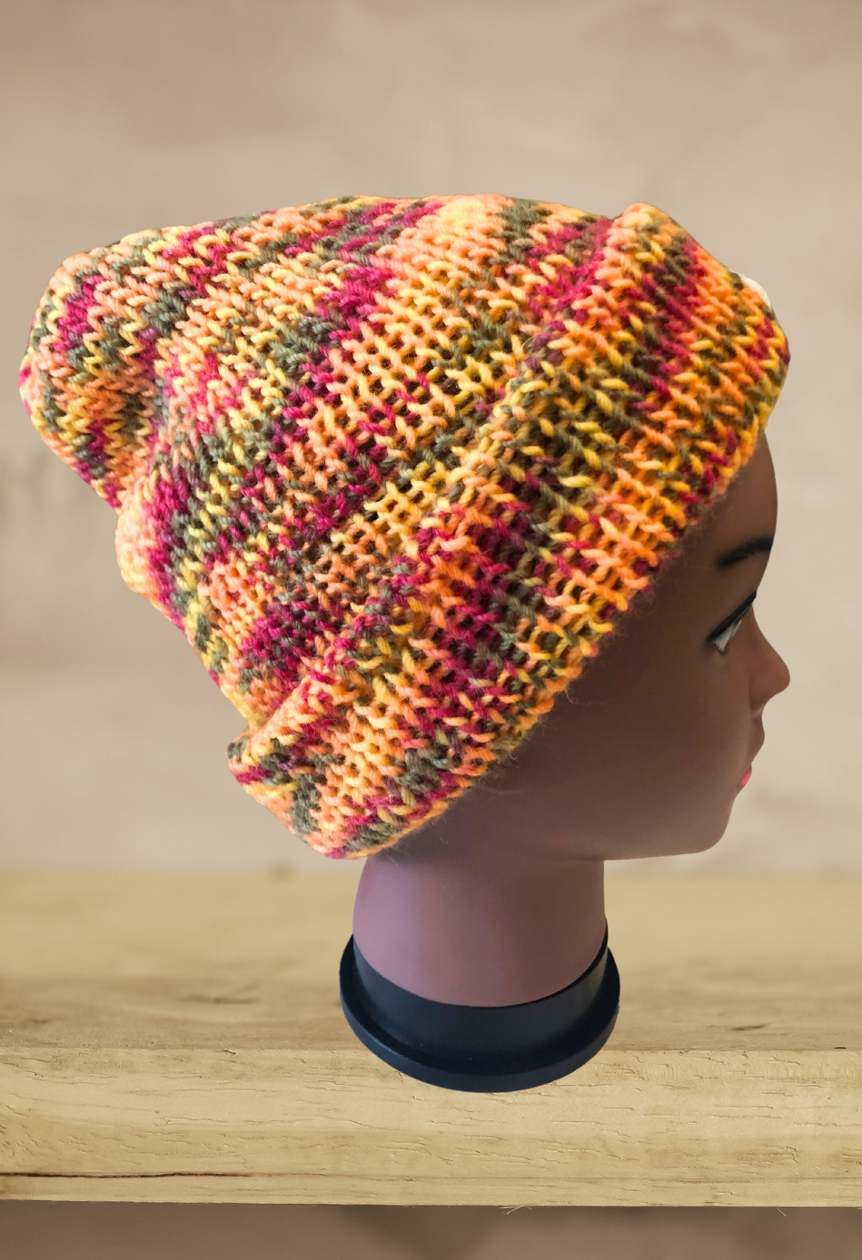 Boho Slouchy Beanie – Handknit from Sustainable Merino Wool in Autumn Sunset Colors